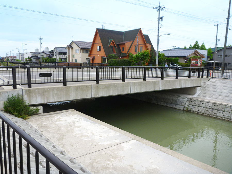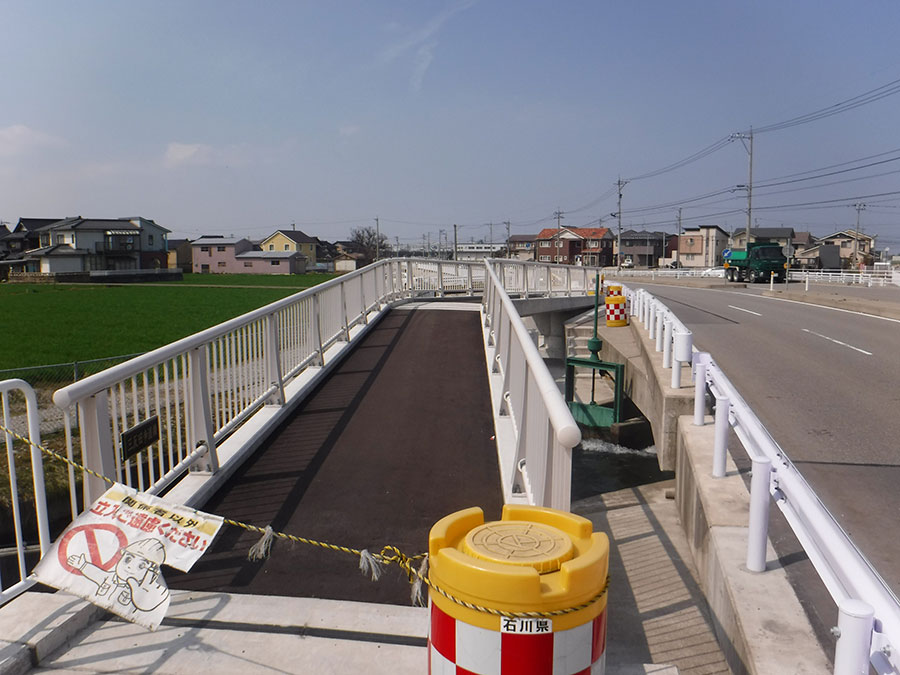 主要地方道小松山中線の整備に際し、架け替えが必要となる勅使大橋(ちょくしおおはし)の詳細設計を行いました。主要地方道小松山中線は、小松市中心部から粟津温泉、山代温泉を通り山中温泉に至る観光道路です。また、沿線地域にお住まいの方々にとっても、大変重要な生活道路です。