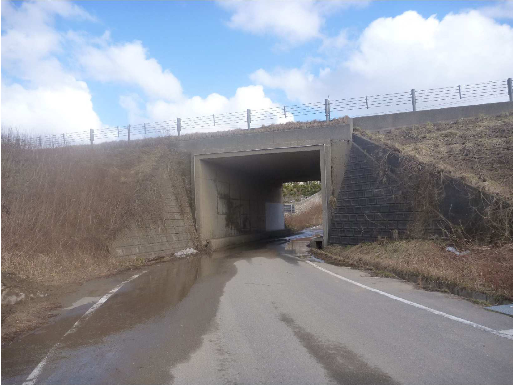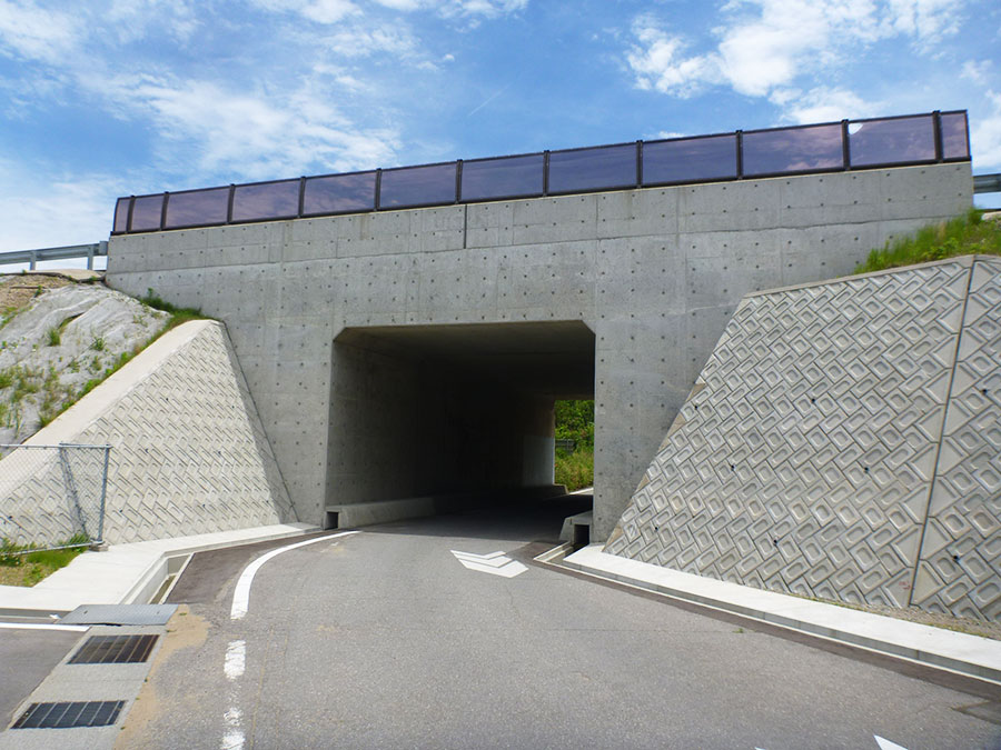 河北郡内灘町字宮坂地内において、地域高規格道路金沢能登連絡道路(のと里山海道)を2車線道路から4車線道路に拡幅するのに伴い、STA.129+3.6の道路横断ボックスを継足しするため、ボックス詳細設計を行いました。設計に当たっては、利便性、経済性、構造性、施工性に配慮し、特にのと里山海道の通行を確保しながらの施工となるため、十分な安全を確保できる施工計画を立案しました。
