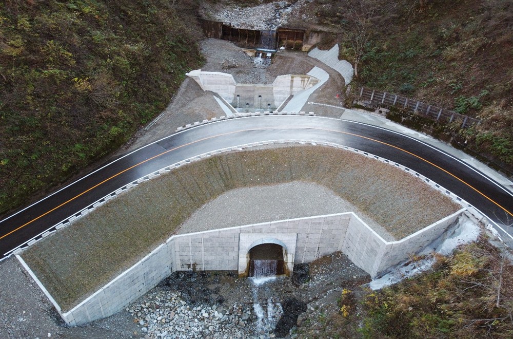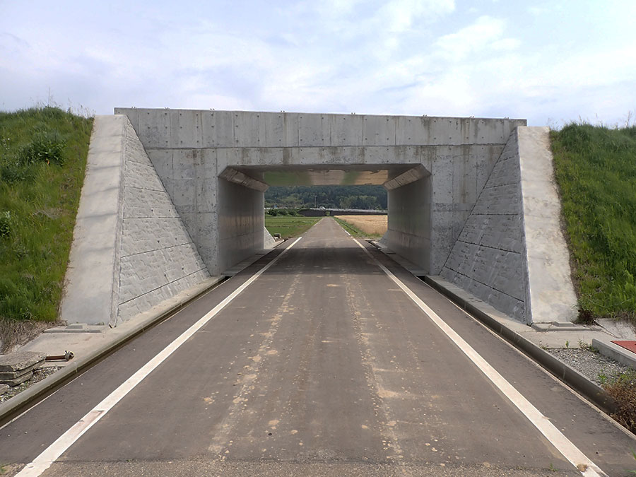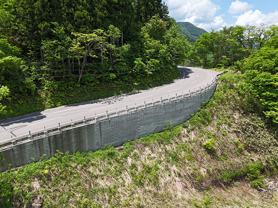 道路構造物には橋梁、擁壁、ボックスカルバート、トンネル等があり、新設の設計から補修、災害時に被災した構造物の復旧まで対応しています。