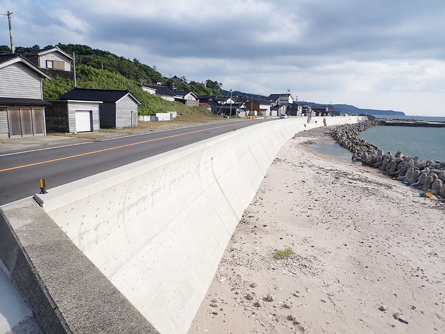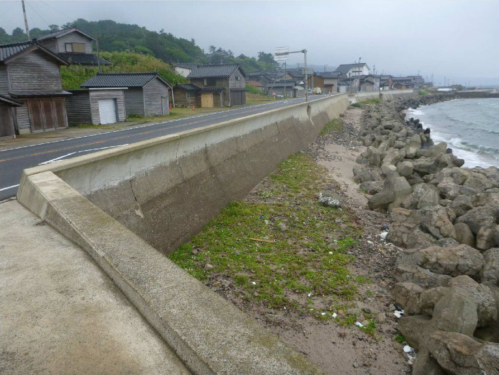 一般国道249号 輪島市門前町黒島地内における護岸詳細設計を行いました。当該計画箇所は、地形的および土地利用上の制約から幅員狭小、線形不良、視距不良等の要改良区間であり、円滑な交通のボトルネックとなっていました。