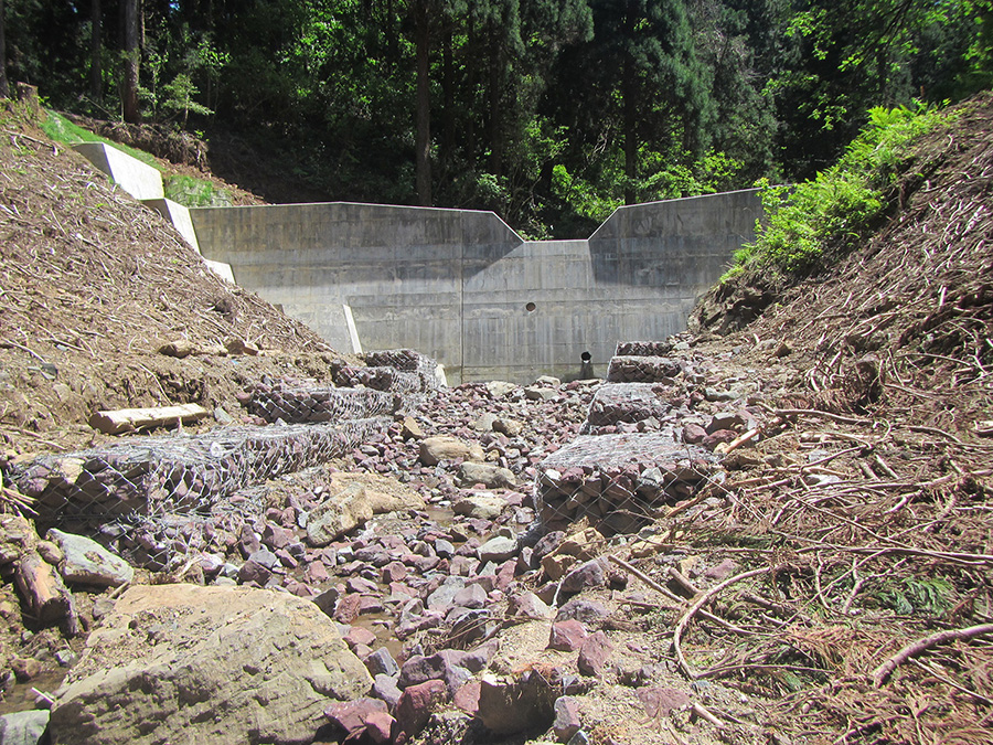 土石流・流木捕捉工(砂防堰堤工)が必要となった。