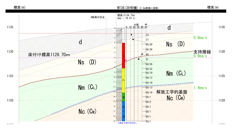 4ランクで風力発電機基礎地盤及び道路計画位置を評価