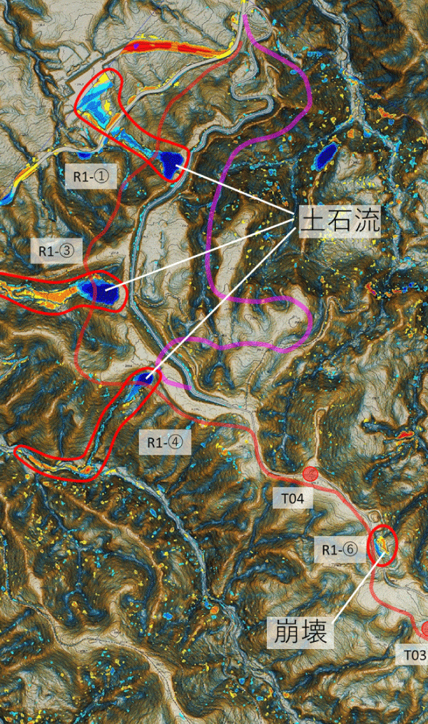 また、抽出した地形はGIS上に投影し、デジタルデータとして管理します。