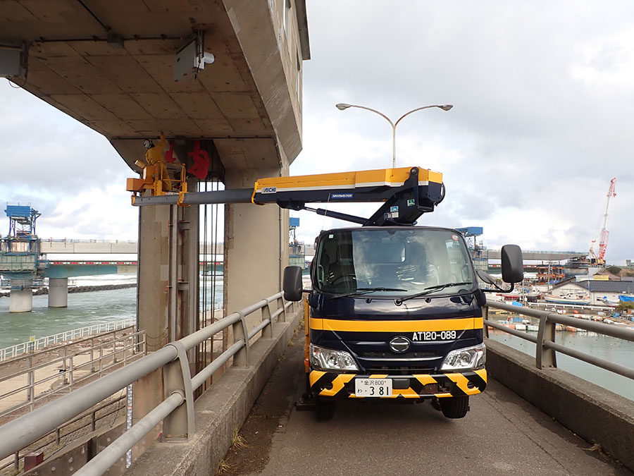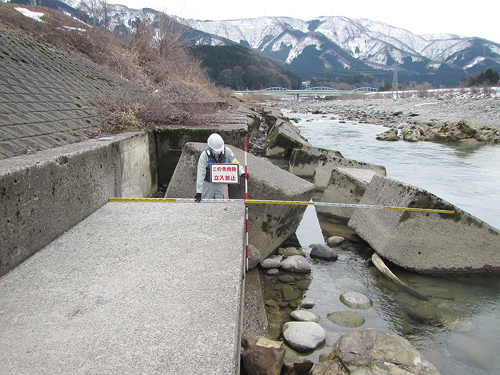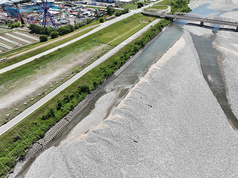 国内でも有数の急流河川である手取川をはじめとして、各自治体が管理する河川の堤防・構造物等の点検、調査を実施しています。