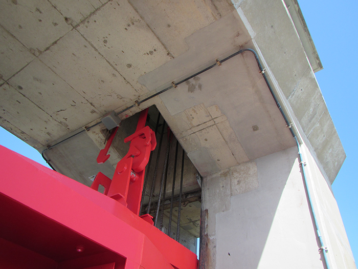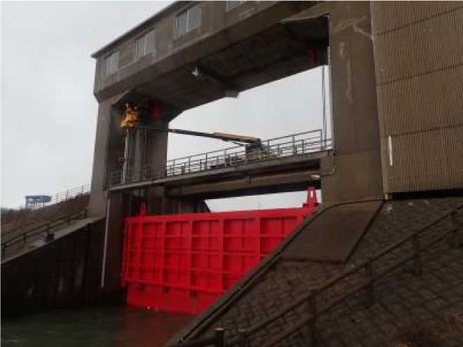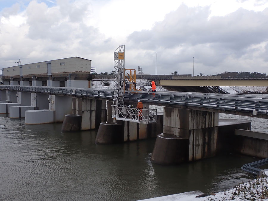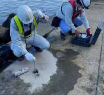 また、海岸に近い水門にはクラックや剥離等が生じているため、標準的なコンクリート調査に加えて塩化物イオン含有量を調べることで塩害の状況も調査した。