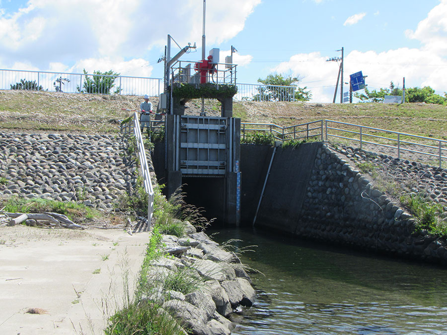 「堤防等河川管理施設及び河道の点検・評価要領」等に準じ、「土堤」「護岸」「樋門・樋管、水門」「河道」の点検を行い、結果を様式に取りまとめ、管理者に報告する。 点検時期は、流量の大きくなる時期に合わせ「出水期前」及び「台風期」に行う。