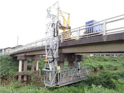 - 点検方法の選定(近接目視は必須。橋梁点検車、梯子、脚立、ロープアクセス 等)