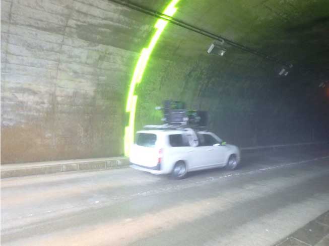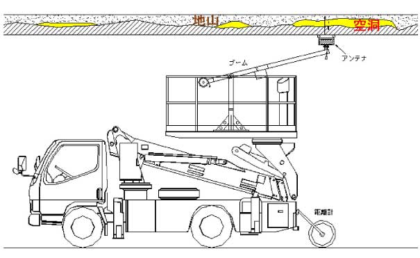 地中レーダ探査は、電磁波を利用して地下浅部の地中情報(ガス管、水道管、ケーブル、空洞等)を把握する探査方法です。トンネルでは覆工コンクリート厚、覆工背面の空洞状況を確認することができます。