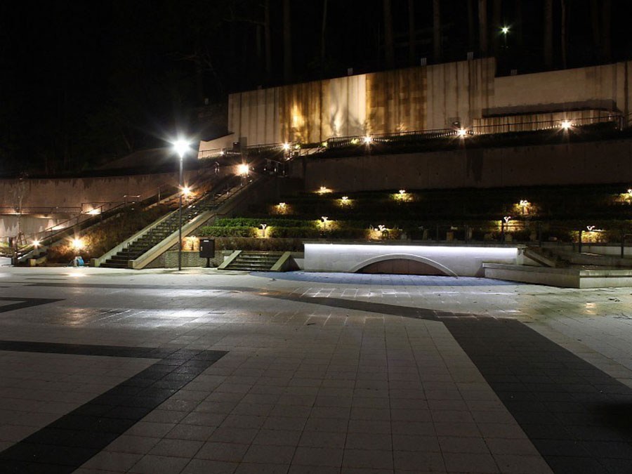 粟津の地域産材や材料を使用するなど、地域性を演出するとともにライトアップによる回遊性、拠点性を高めるなどまちづくりに資する公園整備を行いました。