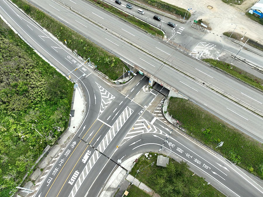 渋滞緩和を図るため交通量調査、交差点設計を実施し、全国でも先例のない、「自動車専用道路インターチェンジにおける常時左折レーン」を設計しました。